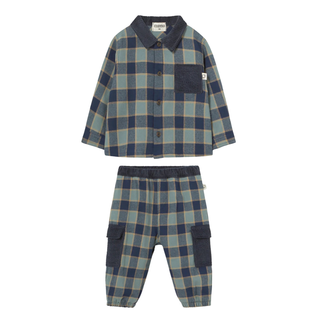 Baby checked flannel shirt and sweatpants Set | Artic Blue