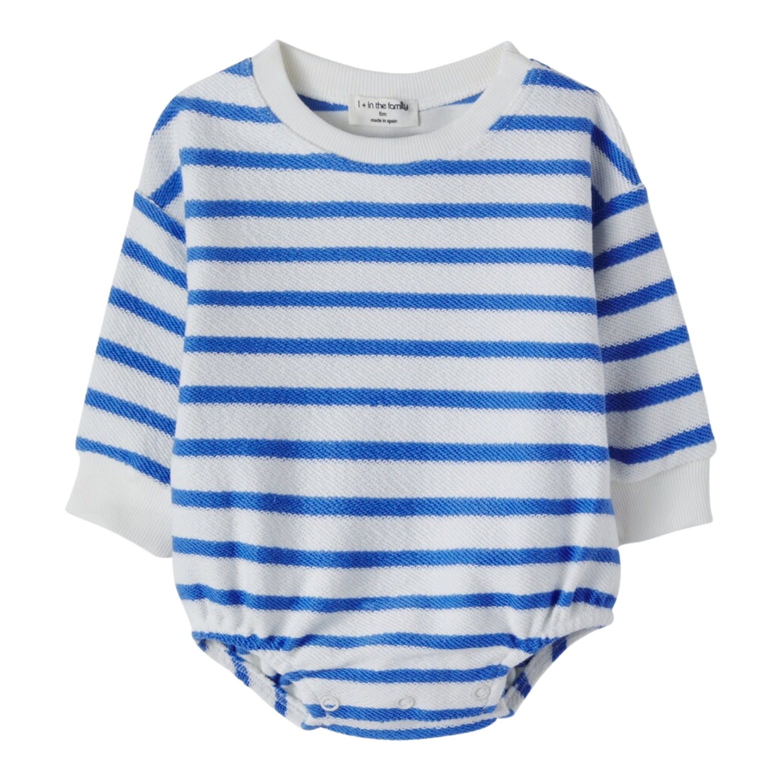 Baby Cotton Fleece Playsuit | Blue Stripe