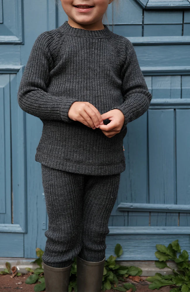 Merino Wool Ribbed Jumper Top | Dark Grey