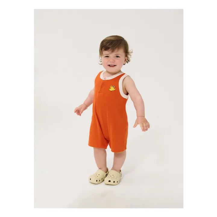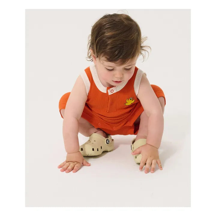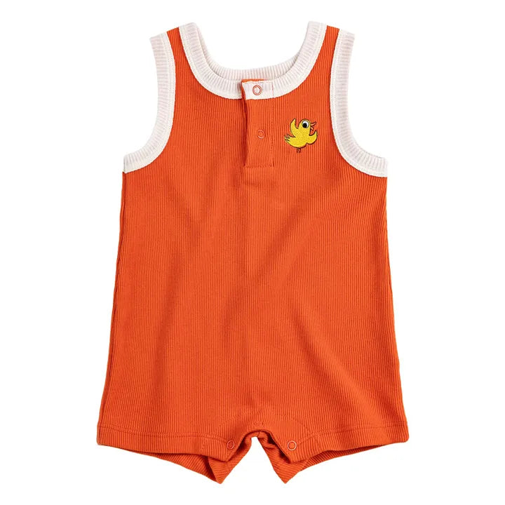 Organic Cotton Bird Ribbed Playsuit | Orange