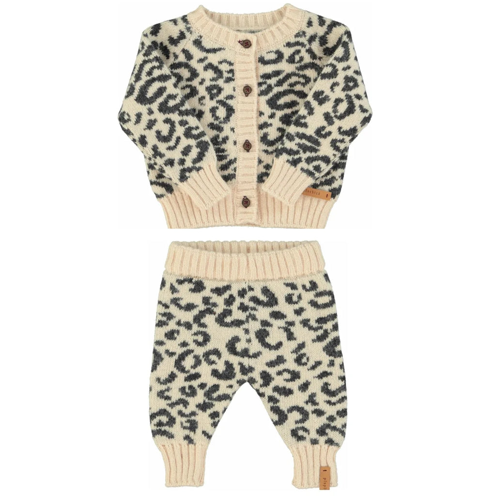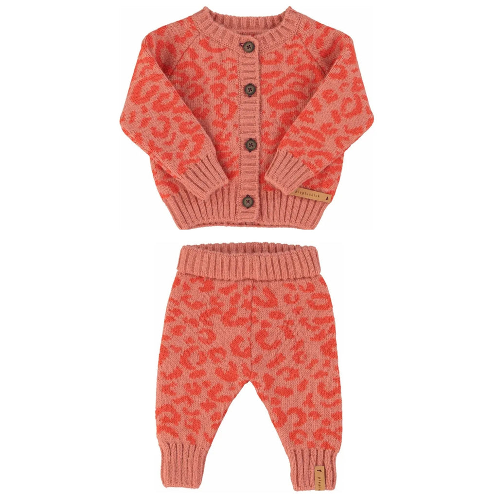 Leopard Wool Cardigan & Leggings | Pale Pink