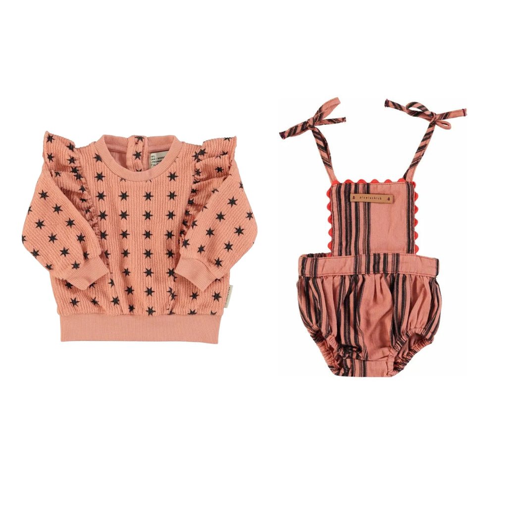 Baby Stars Ribbed Coral Sweatshirt & Pink Striped Romper