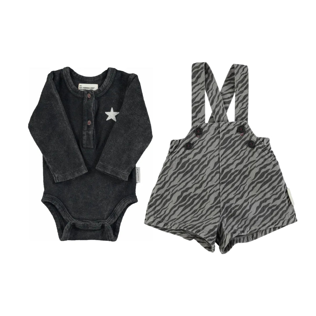 Black Rock & Roll Body & Gray Zebra Short Dungarees