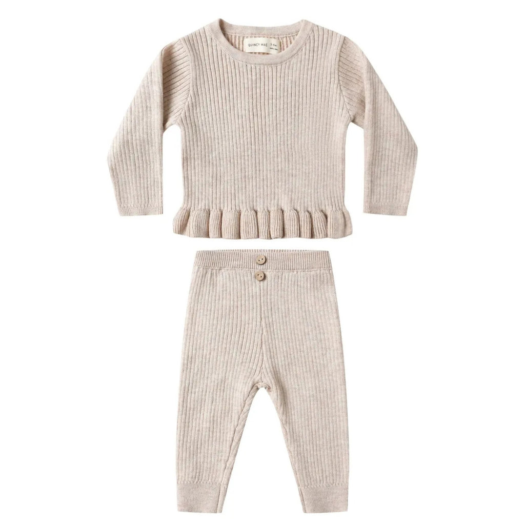 Peplum organic rib knit ruffle L/Sleeves & Legging | Oatmeal