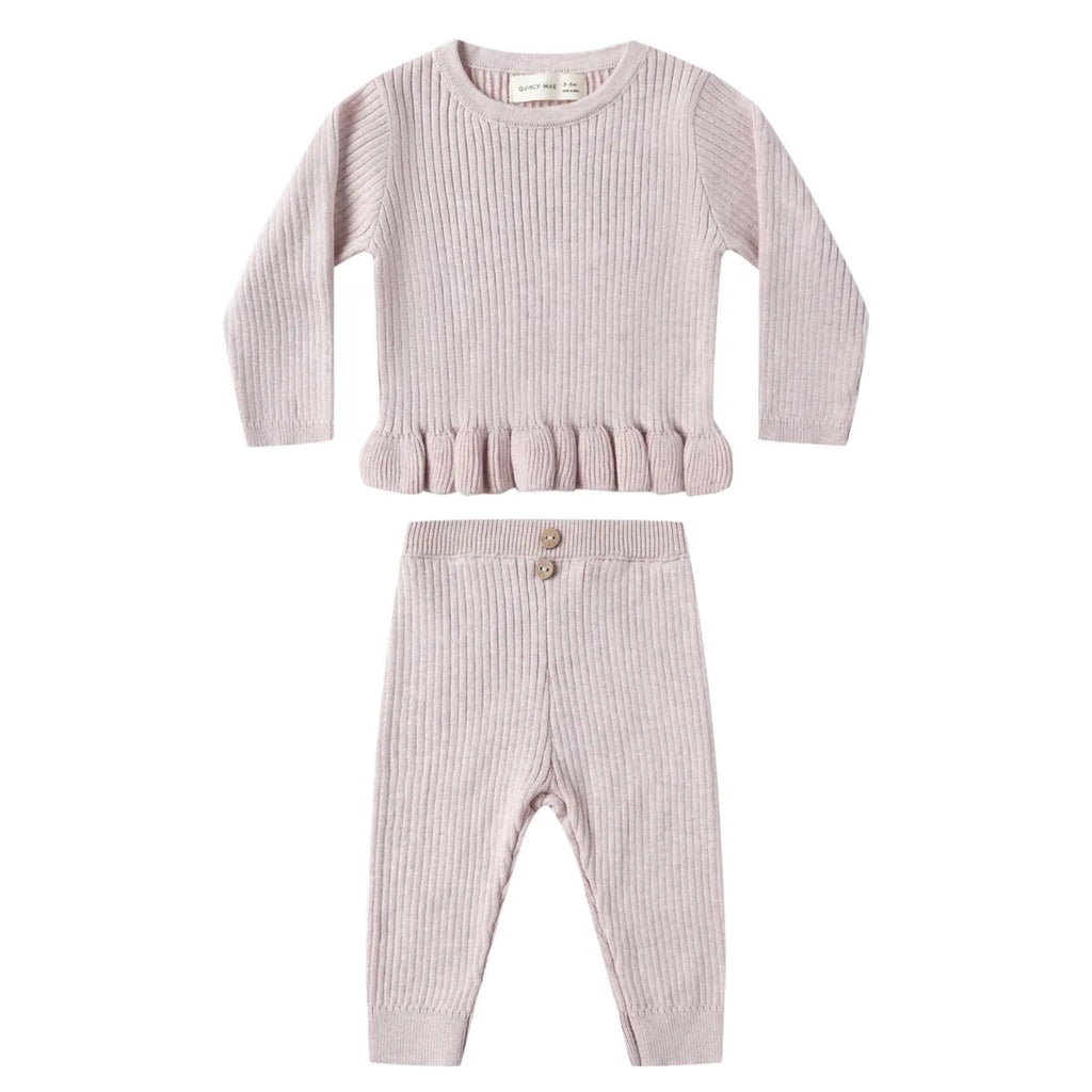 Peplum organic rib knit ruffle L/Sleeves & Legging | Lilac