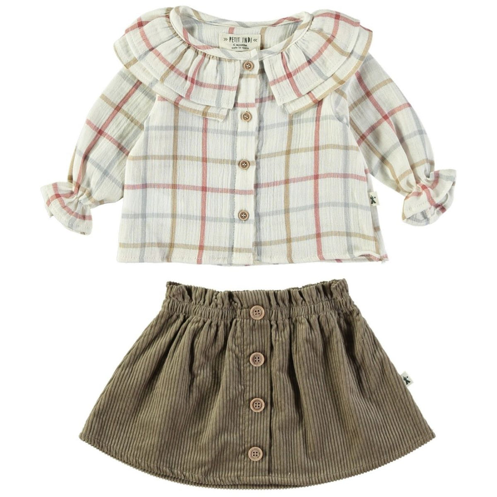 Gingham Blouse & Corduroy Suspender Skirt Set | Grass