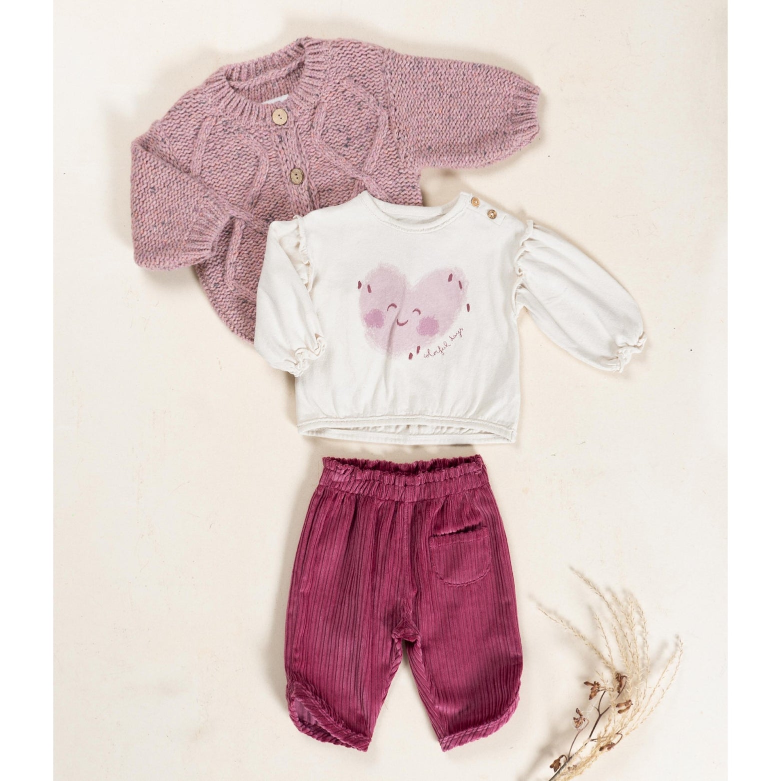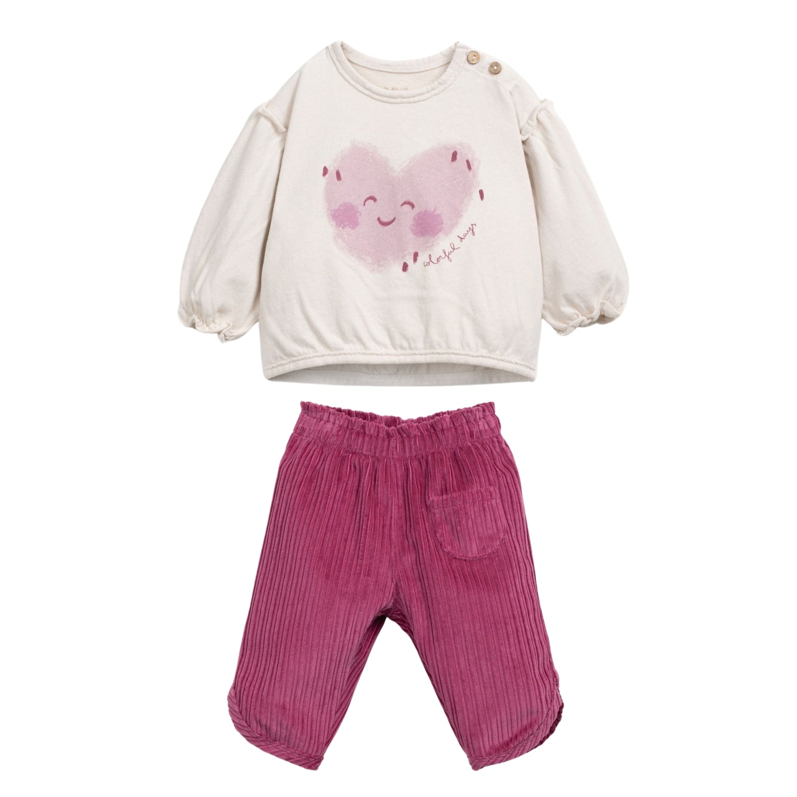 Cotton-blend Ruffle Heart Sweatshirt & Berry Pink Corduroy Pants