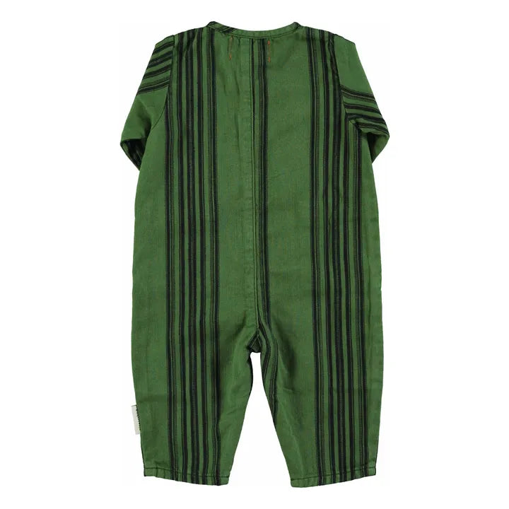 - Long sleeve jumpsuit. Buttons on the front and press studs at the crotch for easy opening. Front patch pockets.