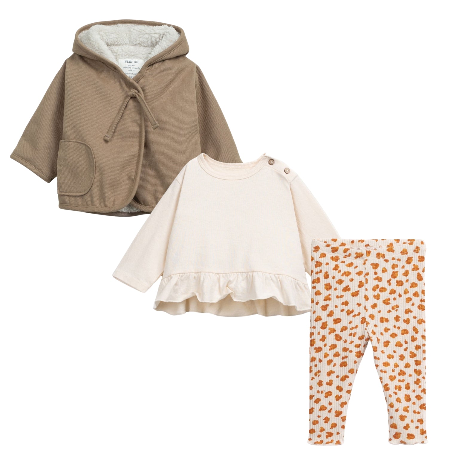 Set of 3 | Plain Ruffle Neutral Jersey Blouse & Waterproof Sahara Fur Lining & Leo Leggings