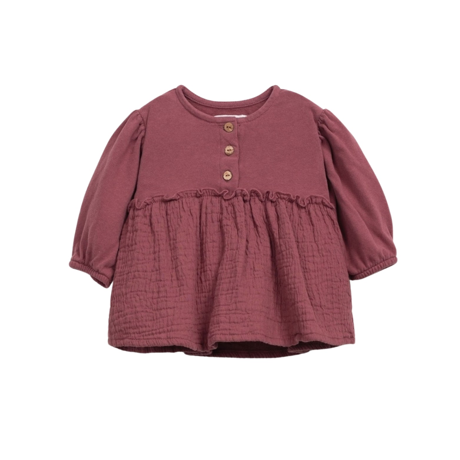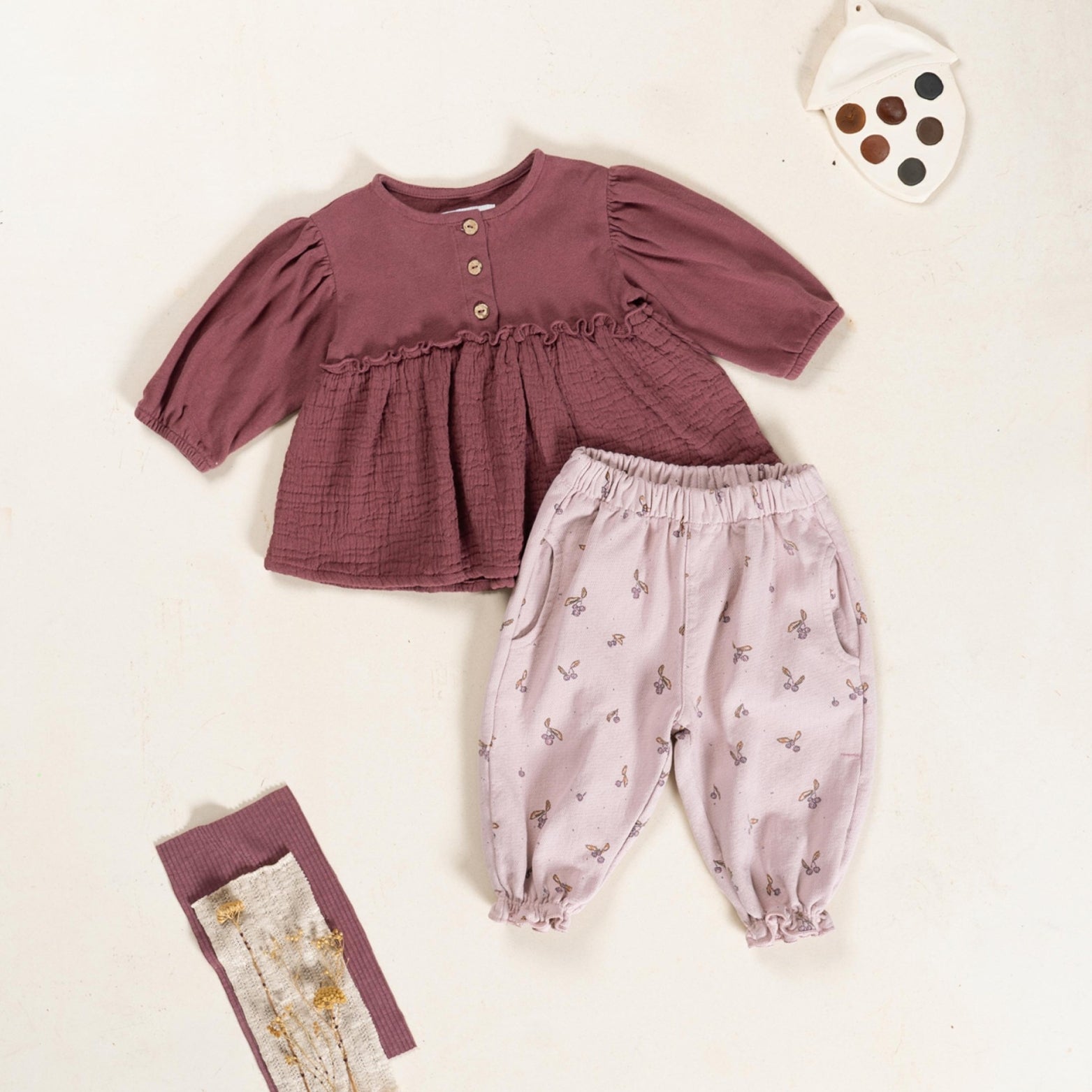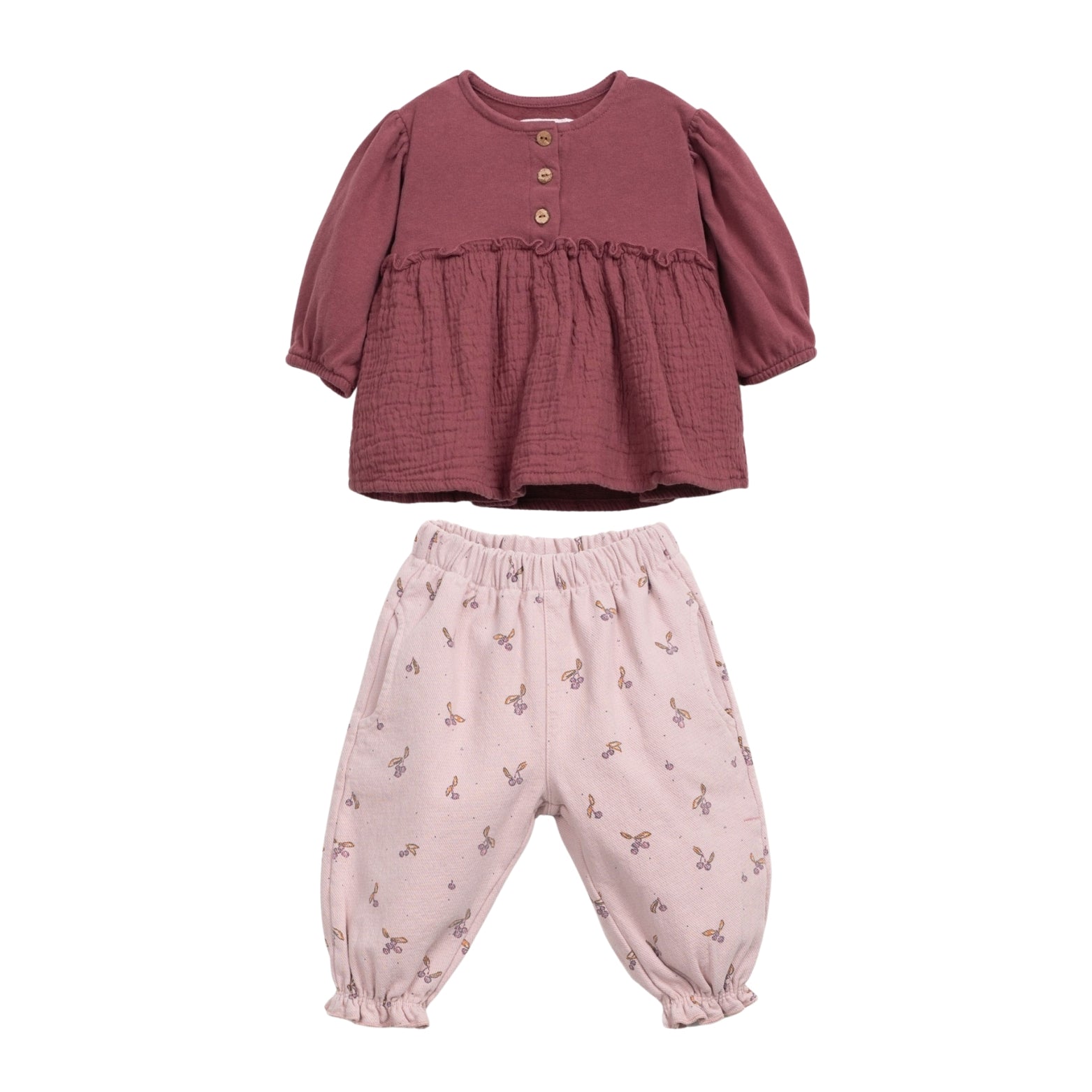 Tunic Fabric Blend Berry Blouse & Light Pink Twill Pants