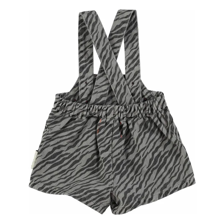 - High waisted shorts with straps adjustable with buttons. Elasticated waist.