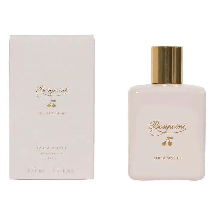 - In this suitcase decorated with cute little cherries, you'll find the iconic Bonpoint Eau de Senteur in its pink lacquered bottle, alongside a little brown rabbit. When you open it, discover the personalized coloring page for your child. This limited-edition case contains the fresh, subtle Eau de Senteur with a hint of orange blossom in a 100ml format, and the emblematic soft bunny plush.