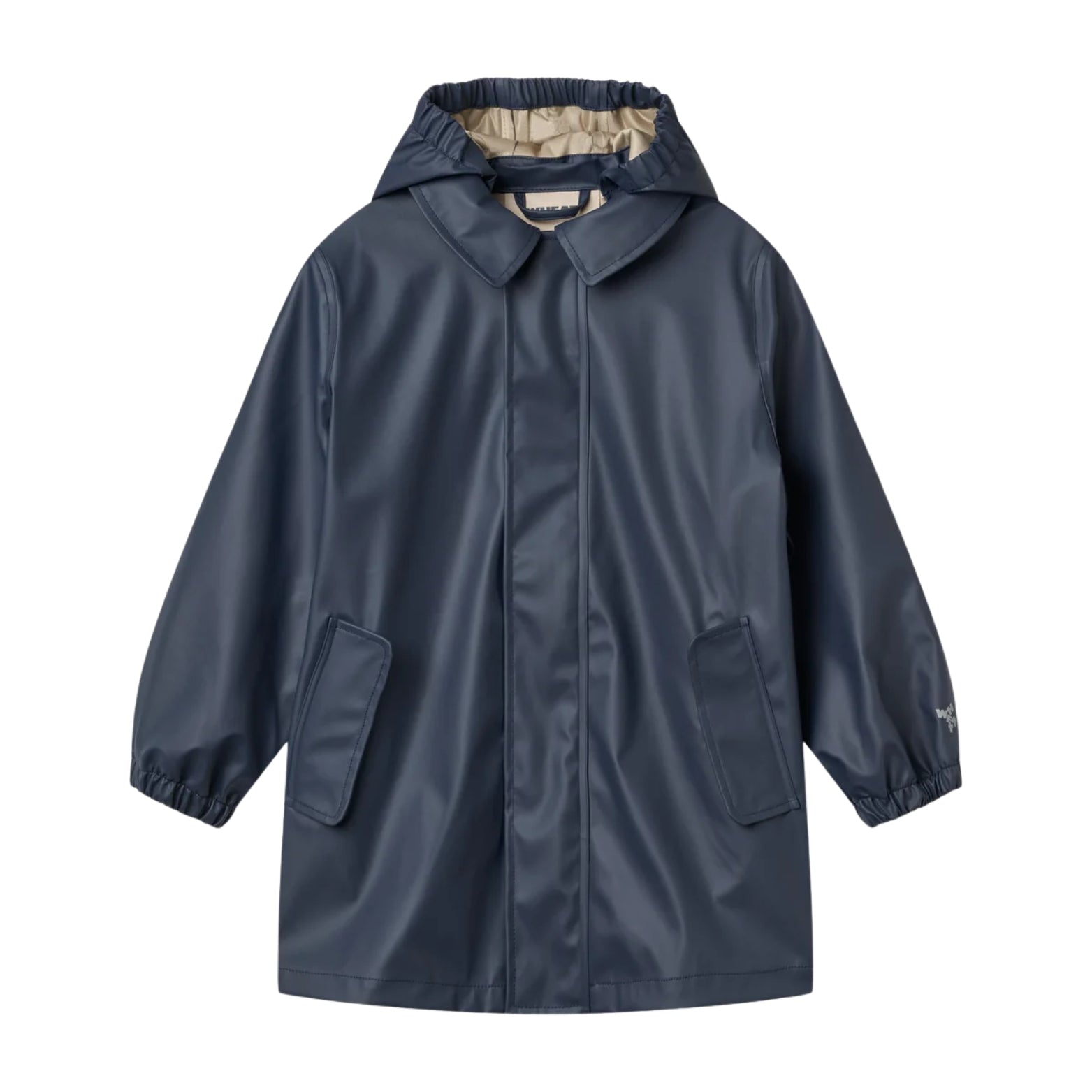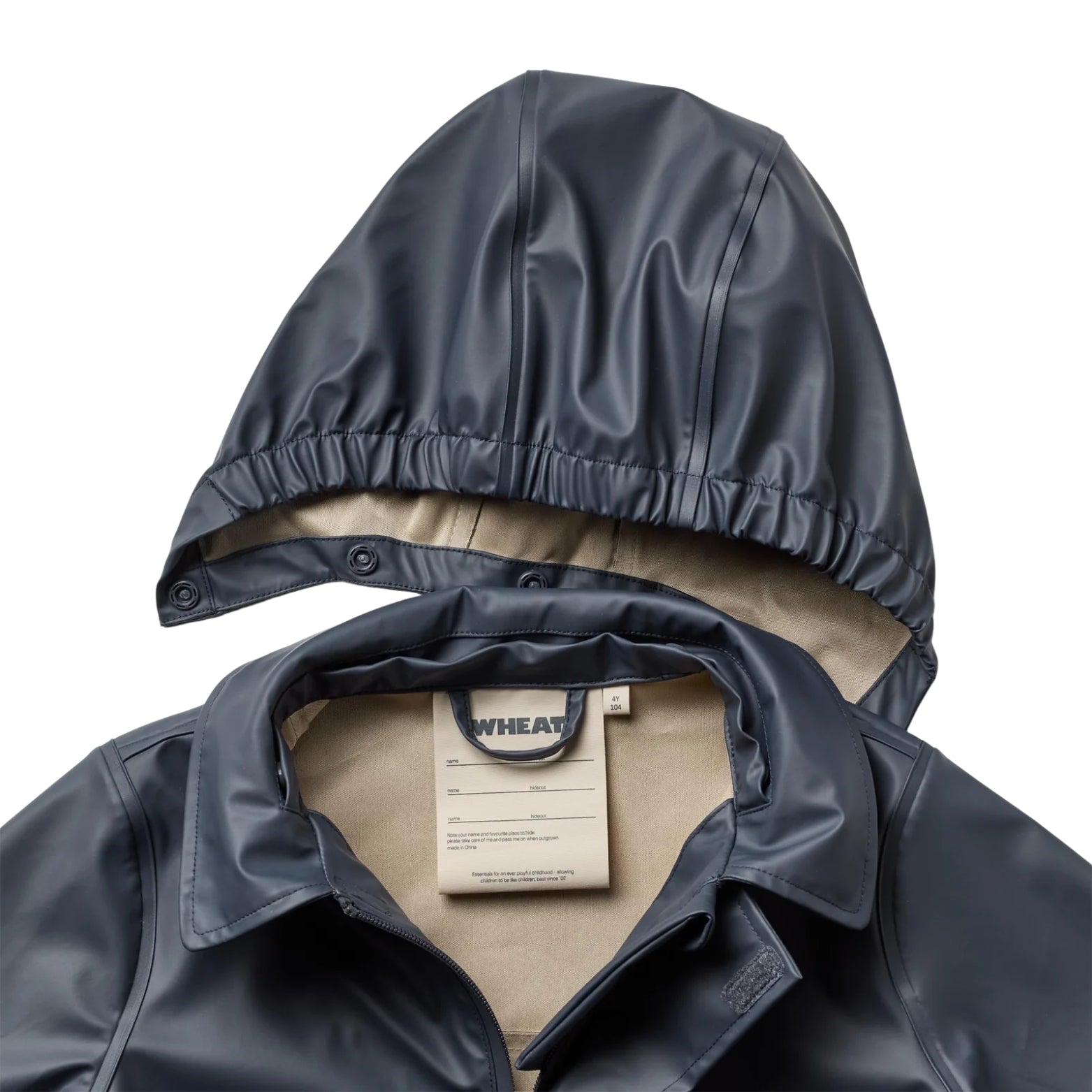 Known for its clean lines and soft palettes, Wheat brings everyday ease to kidswear. The Finley waterproof raincoat is cut to above knee-length and features a detachable hood, turn-down collar, and front flap pockets.