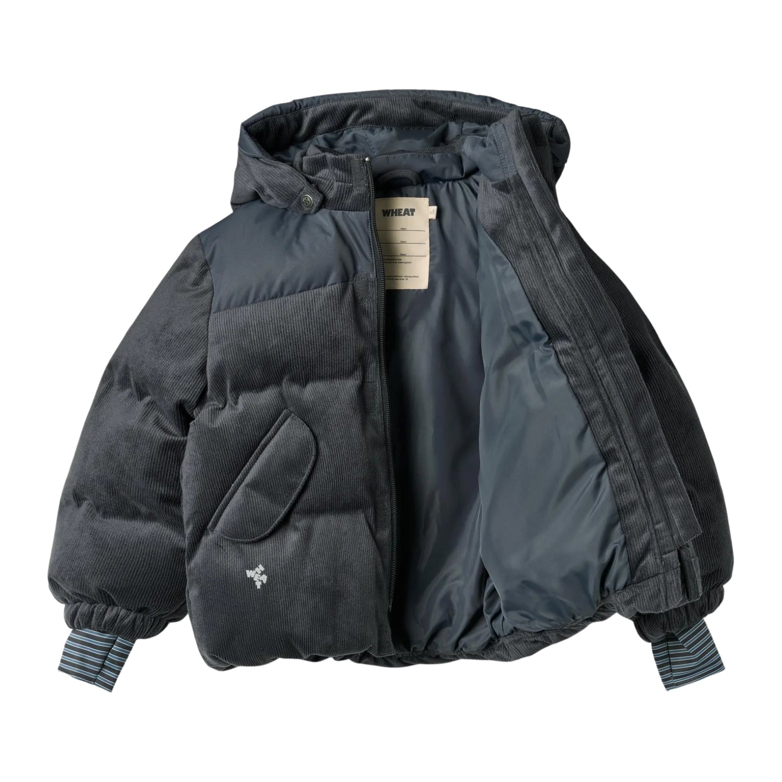 Wheat prioritizes organic and recycled quality materials, focusing on freedom of movement and longevity. The puffer jacket is made from corduroy, complete with heat-trapping ribbed cuffs and a protective hood.