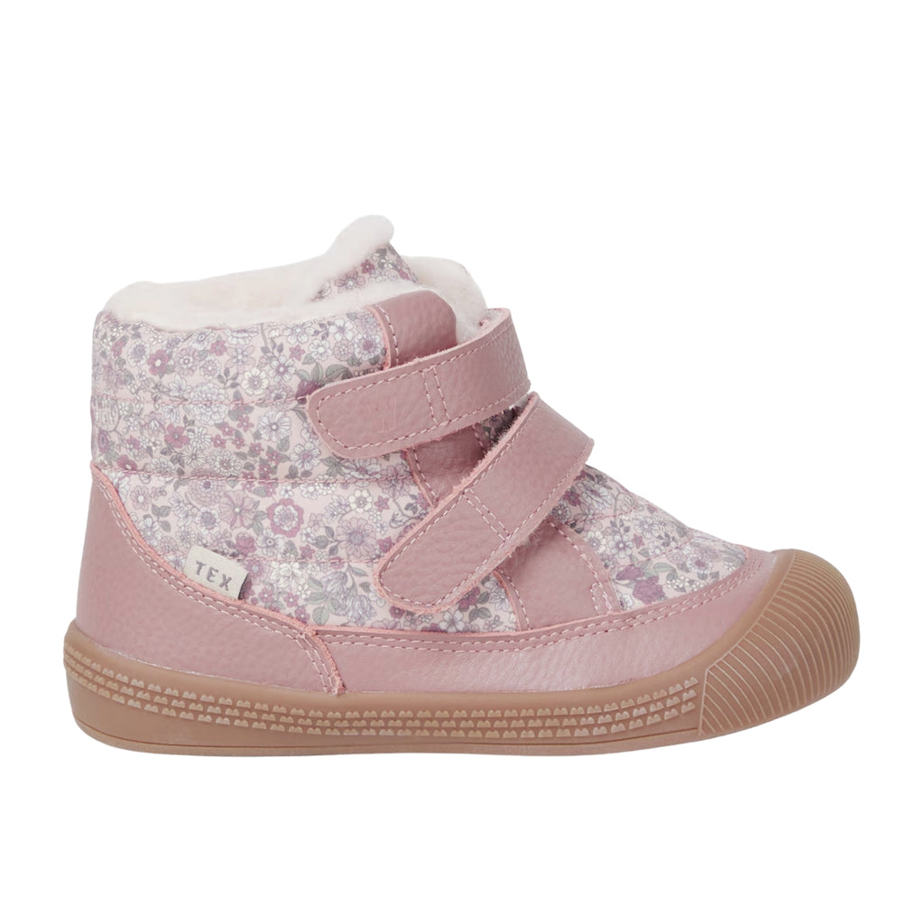 The lightweight and comfortable Tex boots from Wheat are designed with leather trims and a cozy wool lining to keep little feet warm. This pair features charming floral motifs, a rounded toe, and a VELCRO® fastening for easy slip-on.