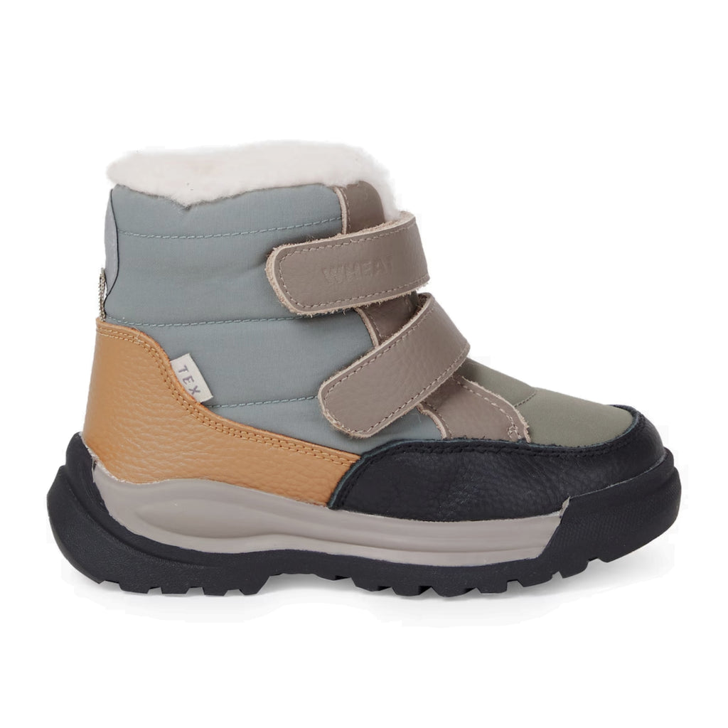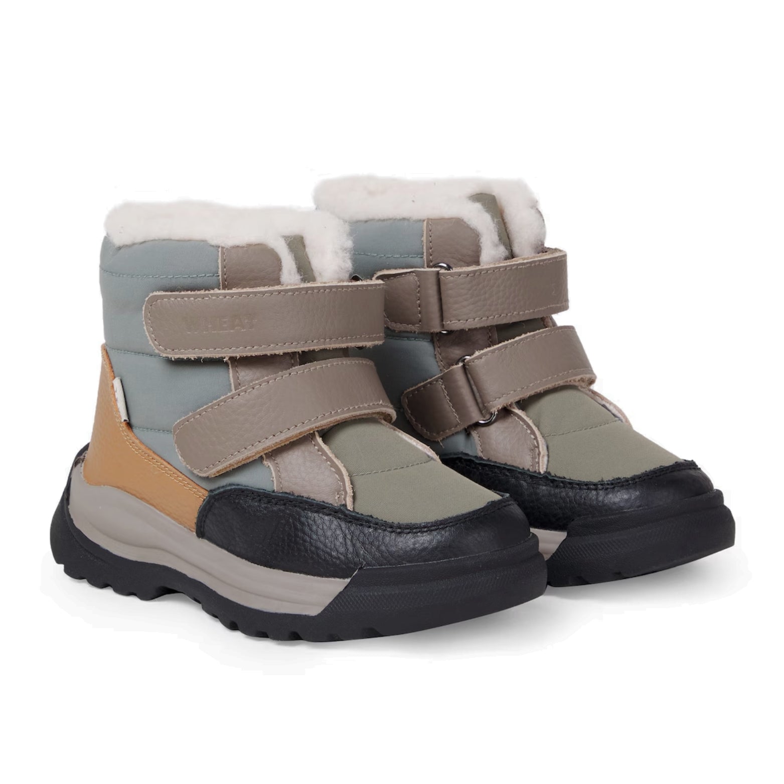 The lightweight and comfortable Tex boots from Wheat are designed with leather trims and a cozy wool lining to keep little feet warm. This pair features a rounded toe and a VELCRO® fastening for easy slip-on.
