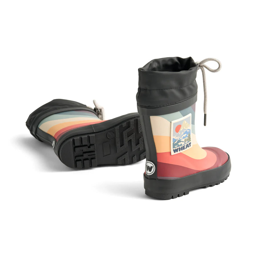 These rain boots from Wheat are made for jumping in puddles while keeping little feet stylish and comfortable. The multicolored design features a logo patch on the sides and a practical drawstring for an adjustable fit.