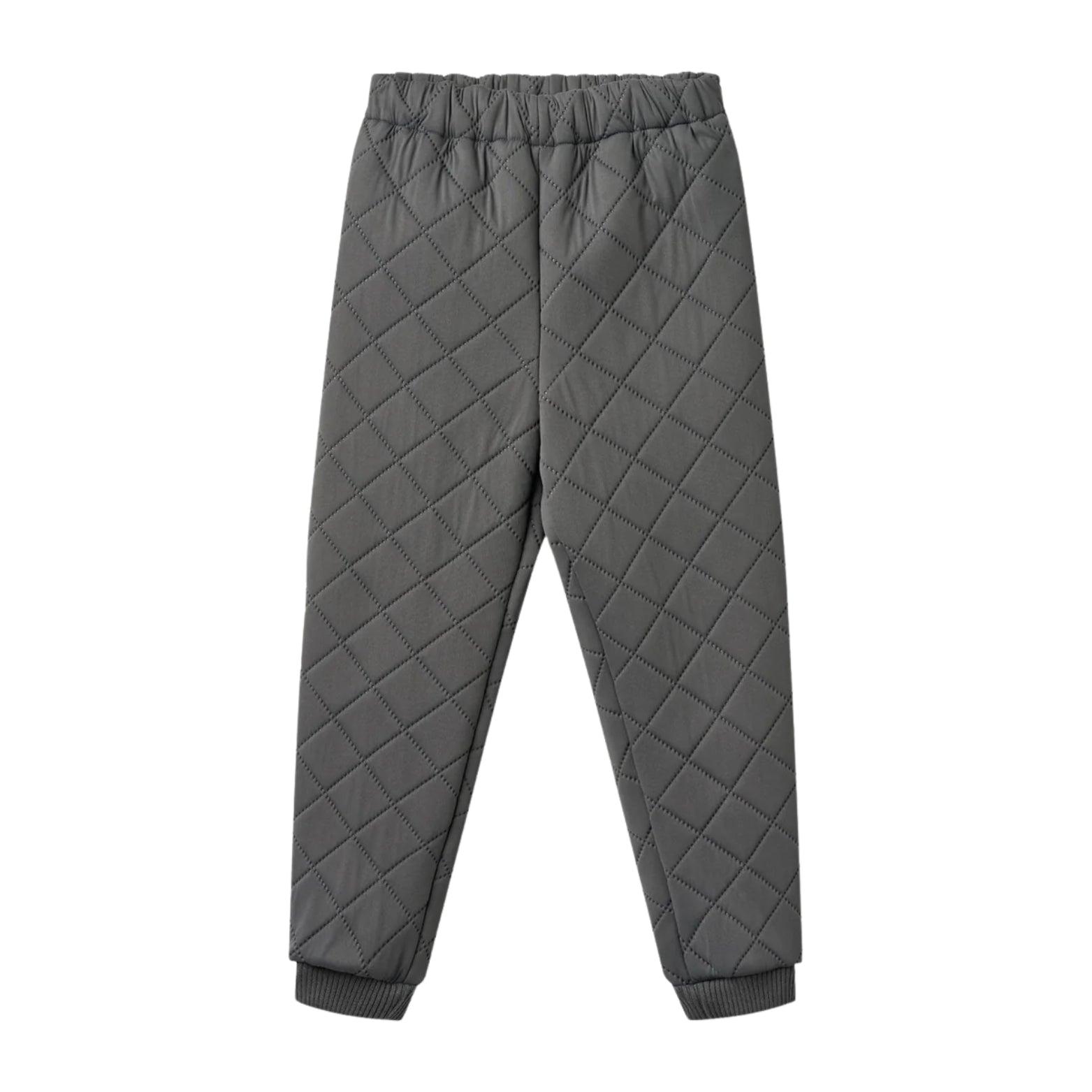 Known for its clean lines and soft palettes, Wheat brings everyday ease to mini-me designs. The Alex pants feature a cozy thermal design, complete with an elasticated waistband and ribbed cuffs.