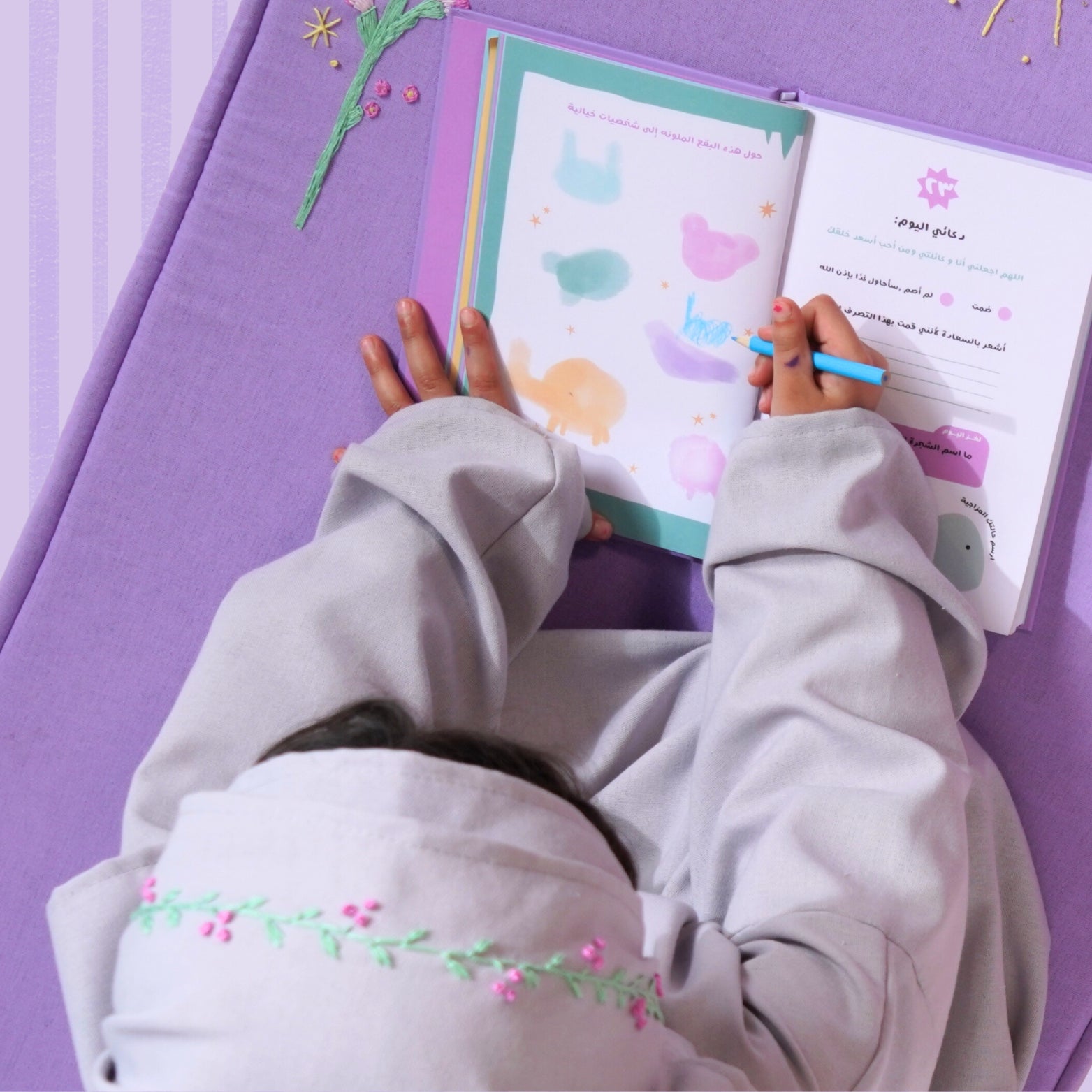 تحتوي على 30 يومًا من الأفكار، الأسئلة اليومية، التعلّم، التدوين، والتلوين — لتشجيع طفلتك على بناء عادة جميلة طوال الشهر.