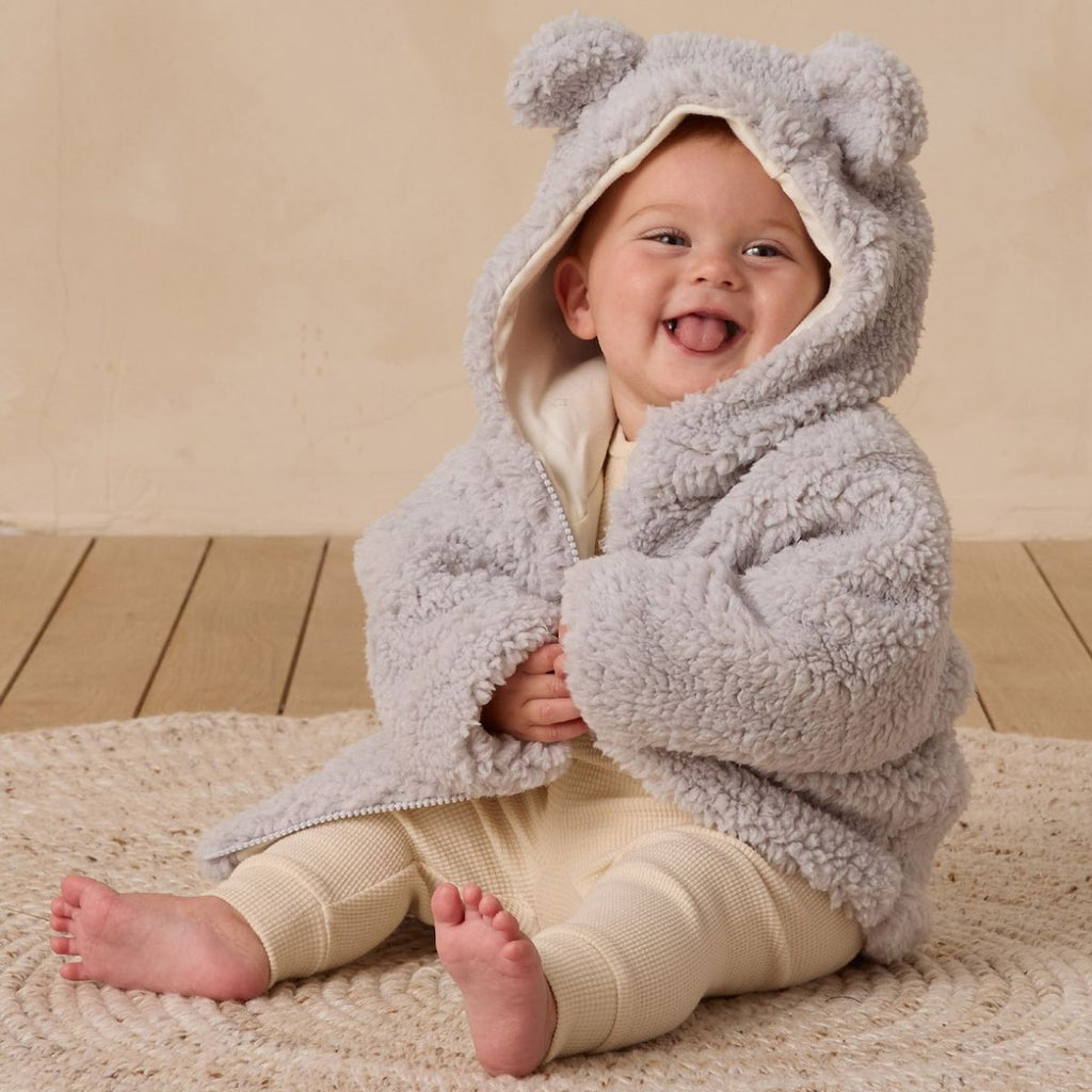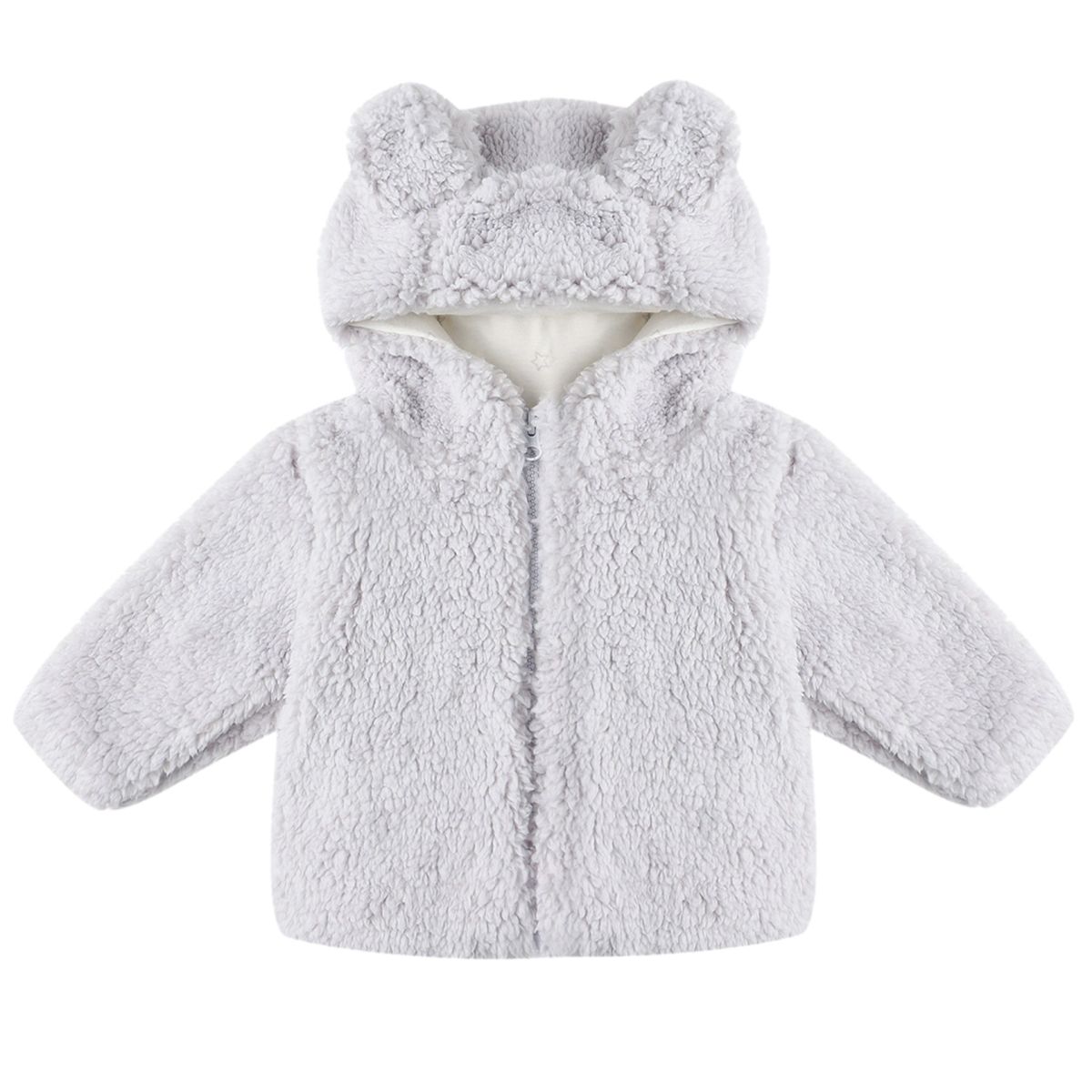 Your little one will be the cutest little cubs for all your cold weather adventures. Front zip for easy ons and offs, faux fur on the outside and a soft jersey liner on the inside, this Bear Jacket gives all the warm and cuddly feels. Featuring our ‘frost’ colorway with 'stars' printed lining. Care: Machine wash cold. Tumble Dry low. Shearling made of 100% Polyester