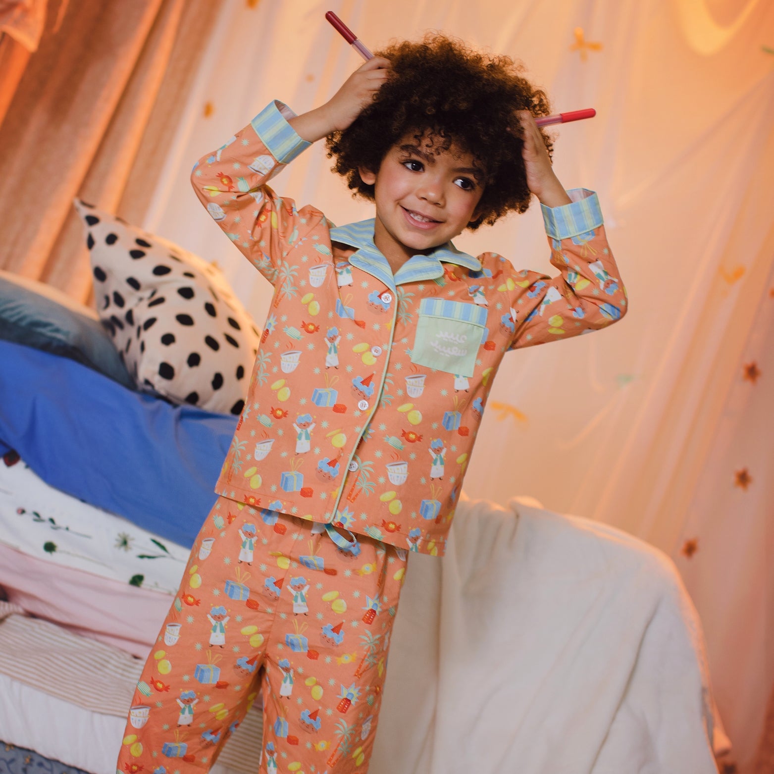 A joyful pyjama made for Eidia excitement, bright Eid mornings, and memories filled with smiles, movement, and celebration. ✨