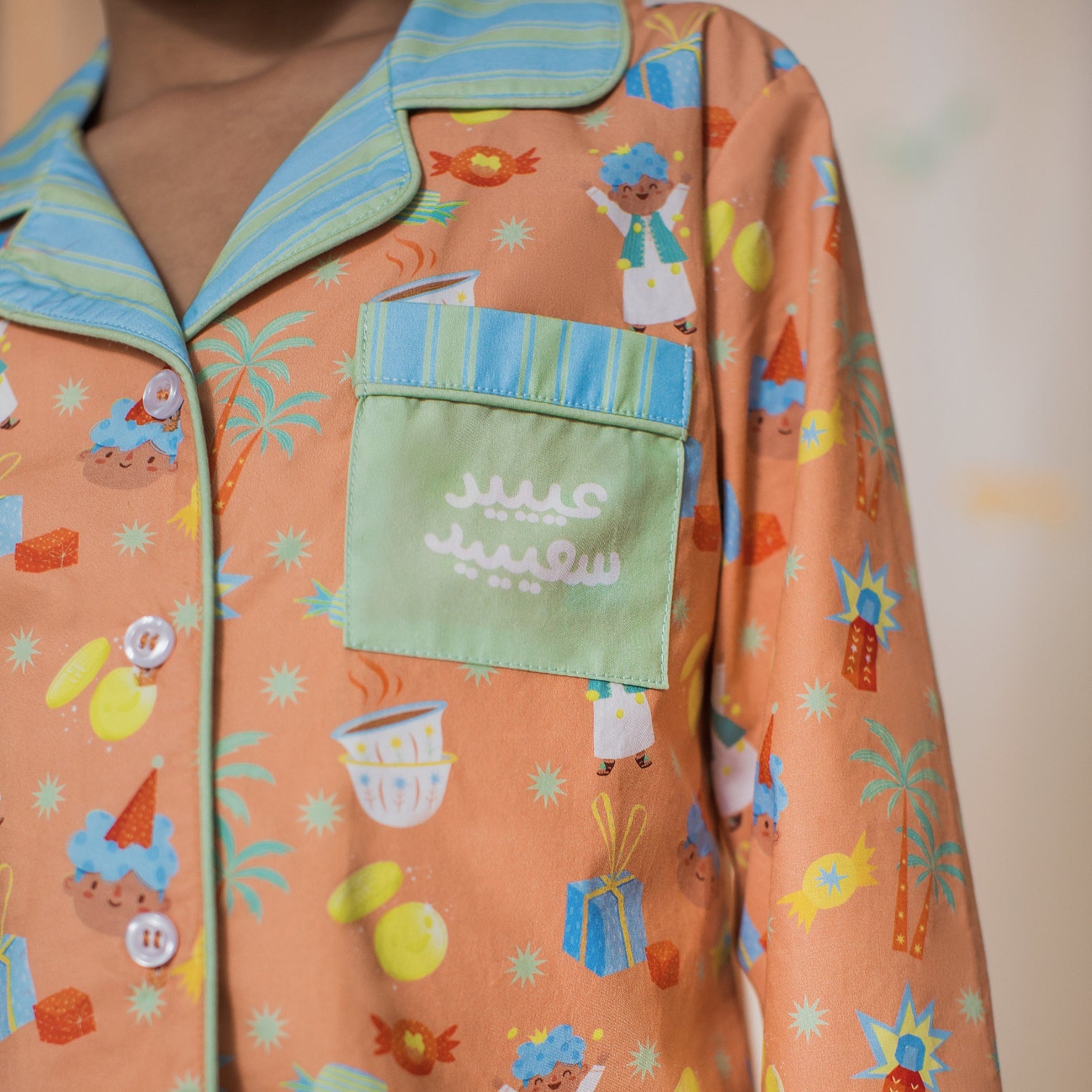 ✶ The artwork on this pyjama is hand-illustrated and created exclusively for The Sent Family, featuring joyful motifs and coin-inspired elements that symbolize happiness, giving, and the magic of Eidia — a design made to feel special and celebratory.
