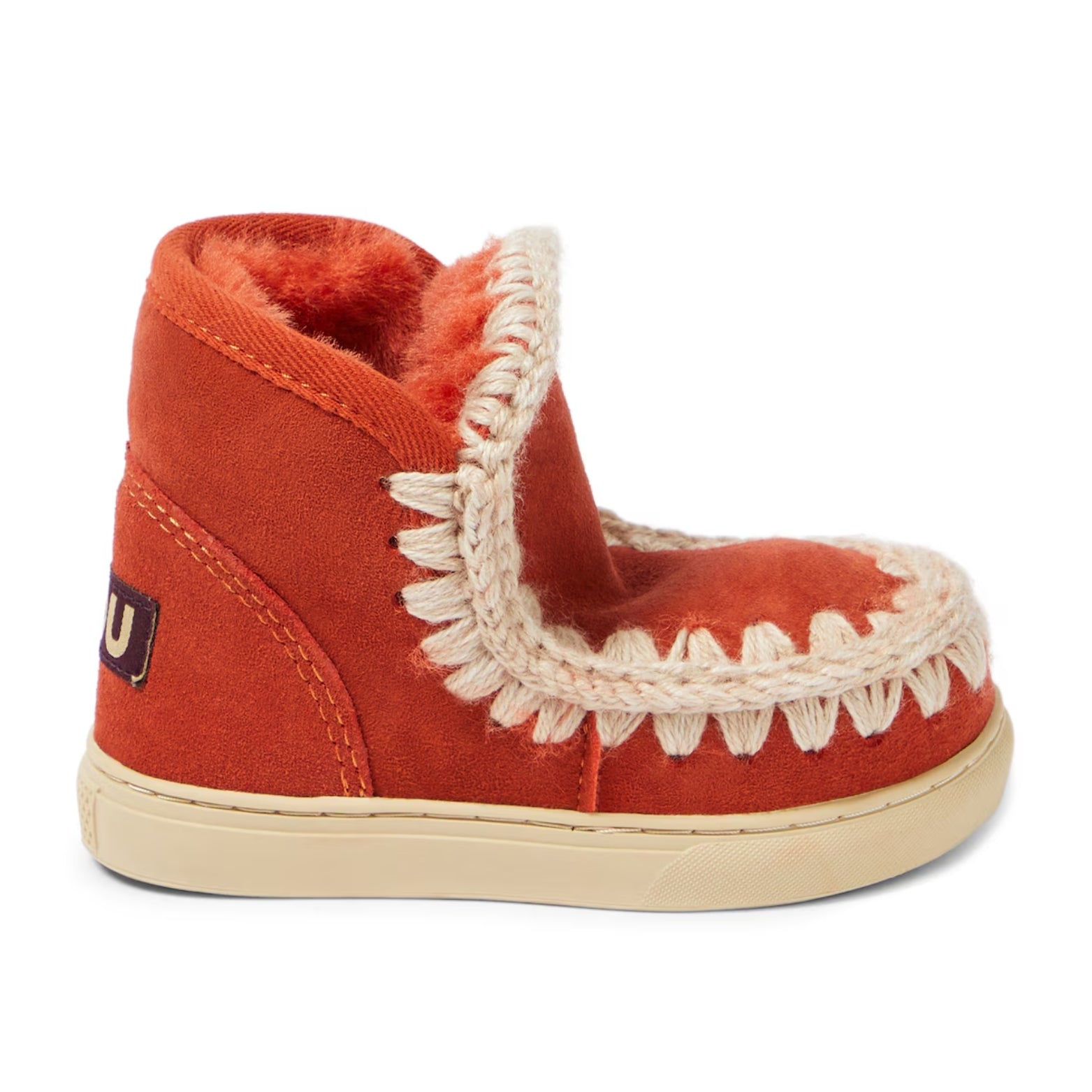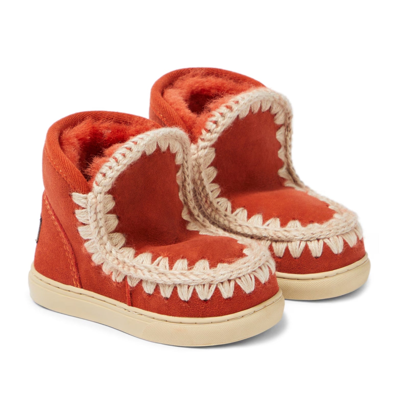 Inspired by the iconic boots, these Mou Kids’ sneakers are the perfect winter staple. Made from smooth suede with shearling lining, the cozy style is trimmed with signature hand-crochet stitching and sits atop rubber soles for all-day comfort.