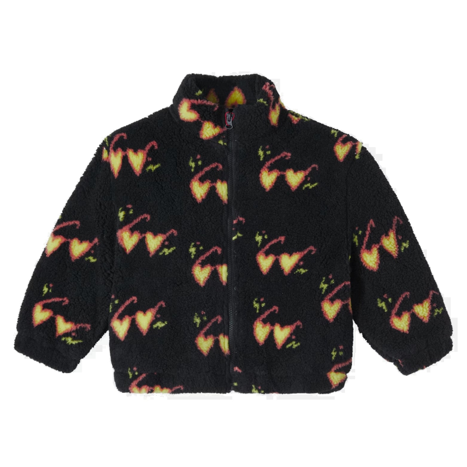 The Heartglasses jacket is made from soft fleece, featuring a mockneck and vibrant detailing all over.