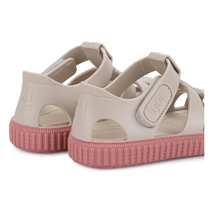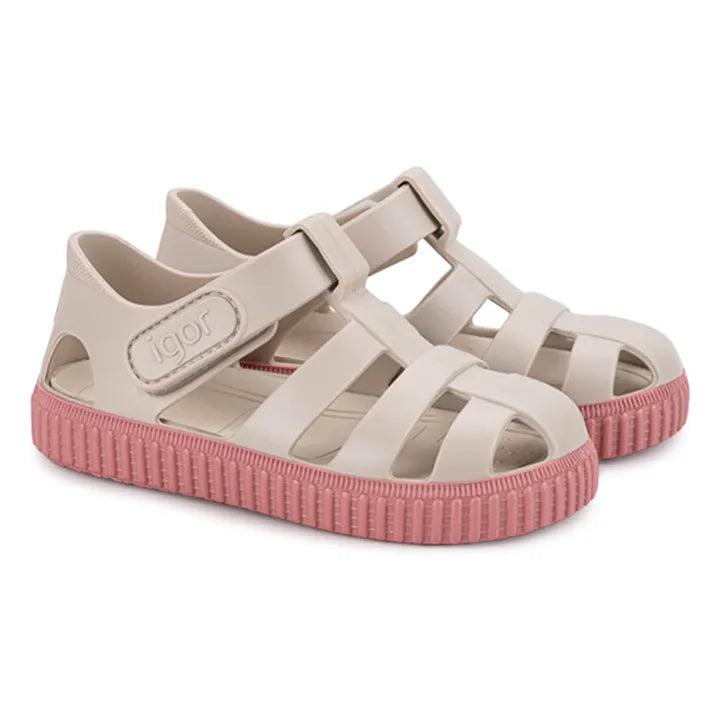 - Beach sandal with color-coordinated sole. Soft interior for little feet.