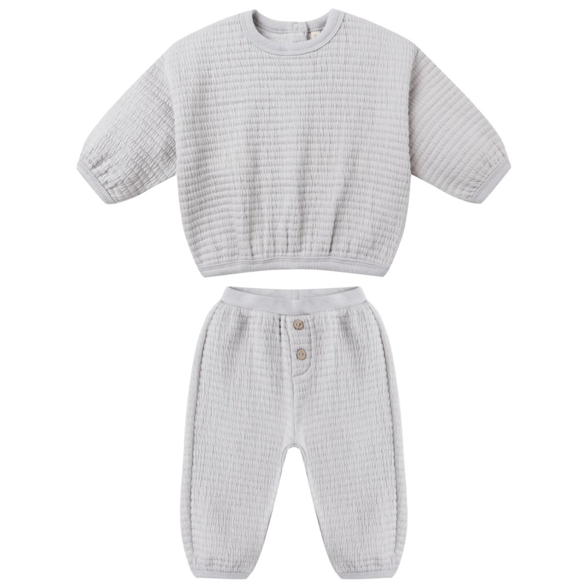 Top: Long sleeve boxy fit shirt with buttons along the center front. Featuring our 'cranberry’ colorway. Care: Machine wash cold. Tumble dry low. Made of 96% Organic Cotton, 4% Elastane Legging: Organic cotton legging with elastic waistband and coconut button detailing at front. Featuring our ‘cranberry’ colorway. Care: Machine wash cold. Tumble dry low. Made of 96% organic cotton 4% elastane
