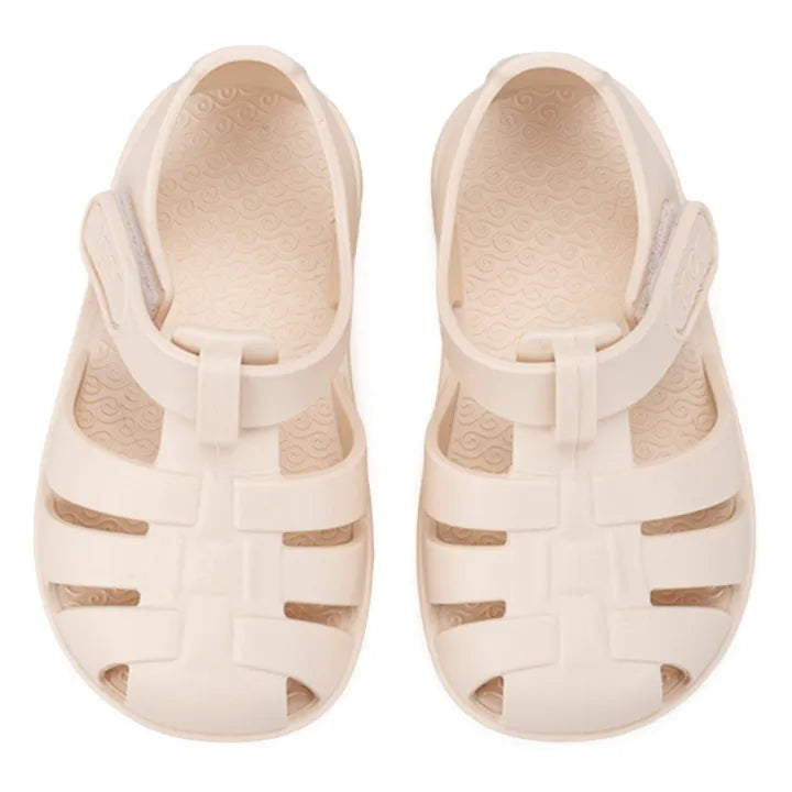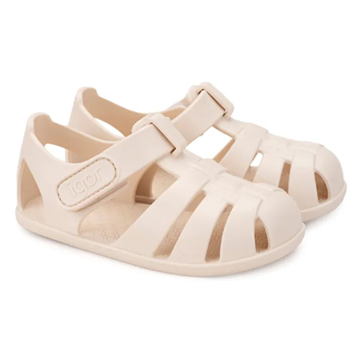 - A jelly shoe based on the barefoot medium concept, zero drop, flexible and supple, made with at least 50% recycled PVC, and featuring a Velcro fastening.